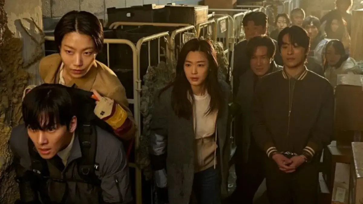 The camera cuts to Ji Chang-wook looking through a glass door. On the other side, hundreds of infected aren't scratching at the glass; they are stacking themselves like ants to reach the ventilation shafts above. The teaser ends with Jun Ji-hyun realizing the horrific truth: "They aren't hunting us... they are harvesting us."